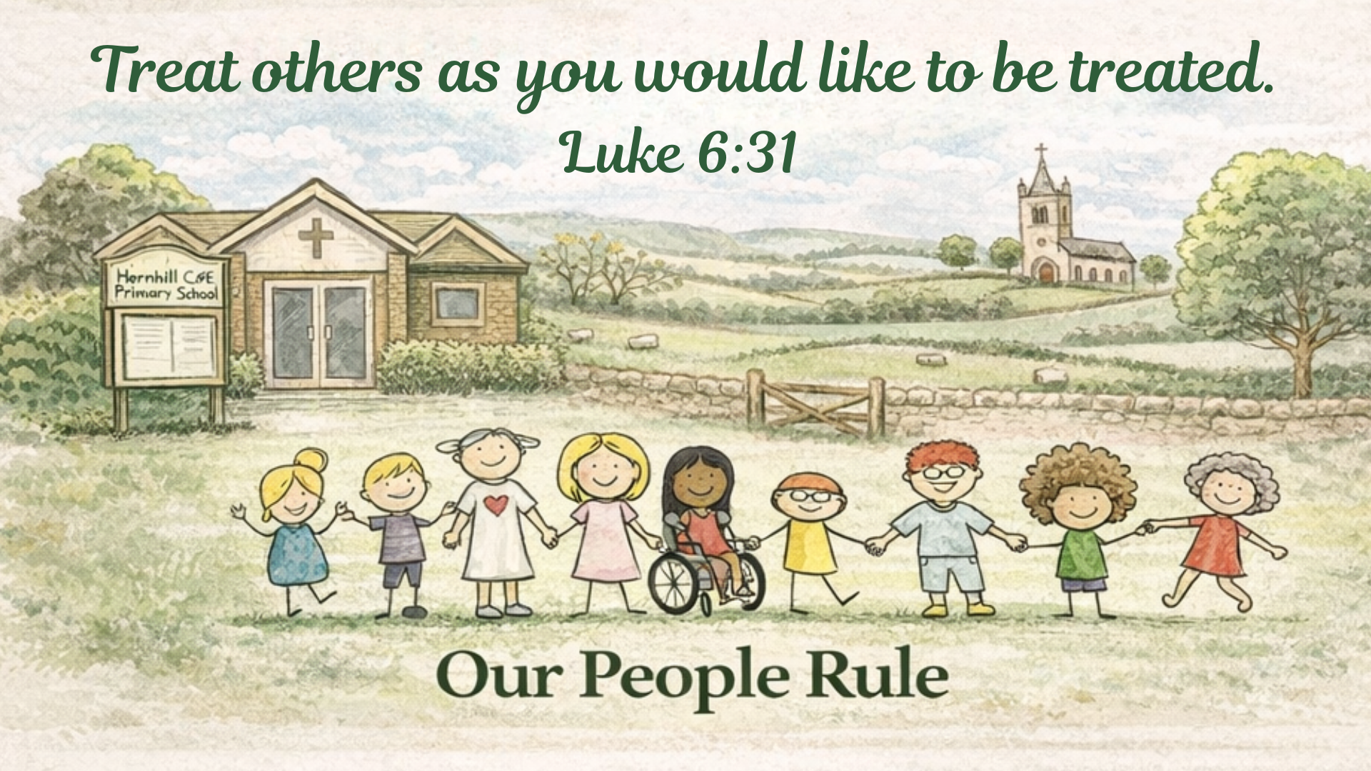 Our Gospel-based People Rule (Luke 6:31) is the HOW we live out this vision at Hernhill. Jesus calls us to “treat others as you would like to be treated,” and this principle shapes a culture of kindness, respect and responsibility. It is easily understood by our children, staff and families, and acts as a golden thread running through daily life at Hernhill.